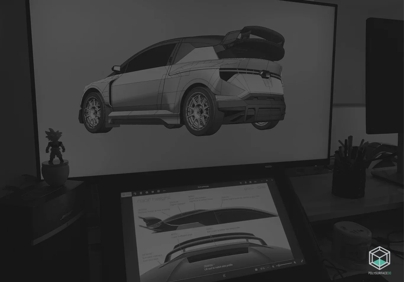 Colaboración estrecha con el estudio de diseño D5creative Ltd, con sede en Colaboración directa con el estudio de diseño D5creative Ltd, con sede en Inglaterra, para el modelado 3D del FC2, un coche de rallycross que ya está compitiendo en circuitos internacionales.basado en el Porsche 992.1 Turbo S, que se ha llevado con éxito a producción.